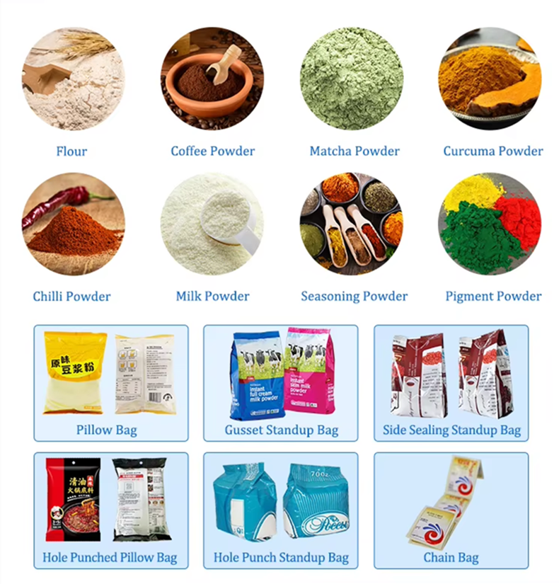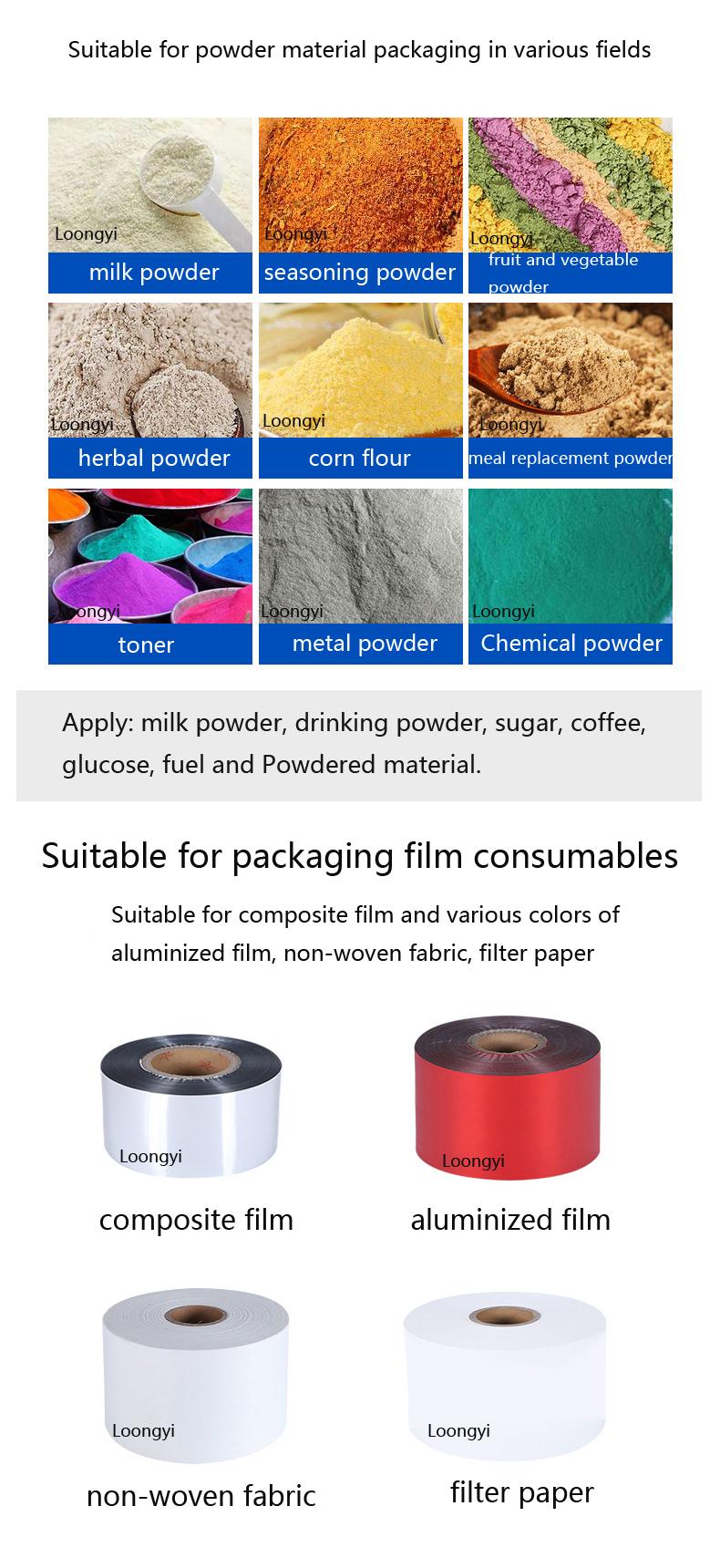 该系统可完成制袋、称重、充填、充氮、日期打码、切袋等作业,适用于奶茶、味精、固体饮料、白糖、葡萄糖、咖啡、饲料、固体药品、粉状添加剂、染料等粉状、颗粒状物料的包装。