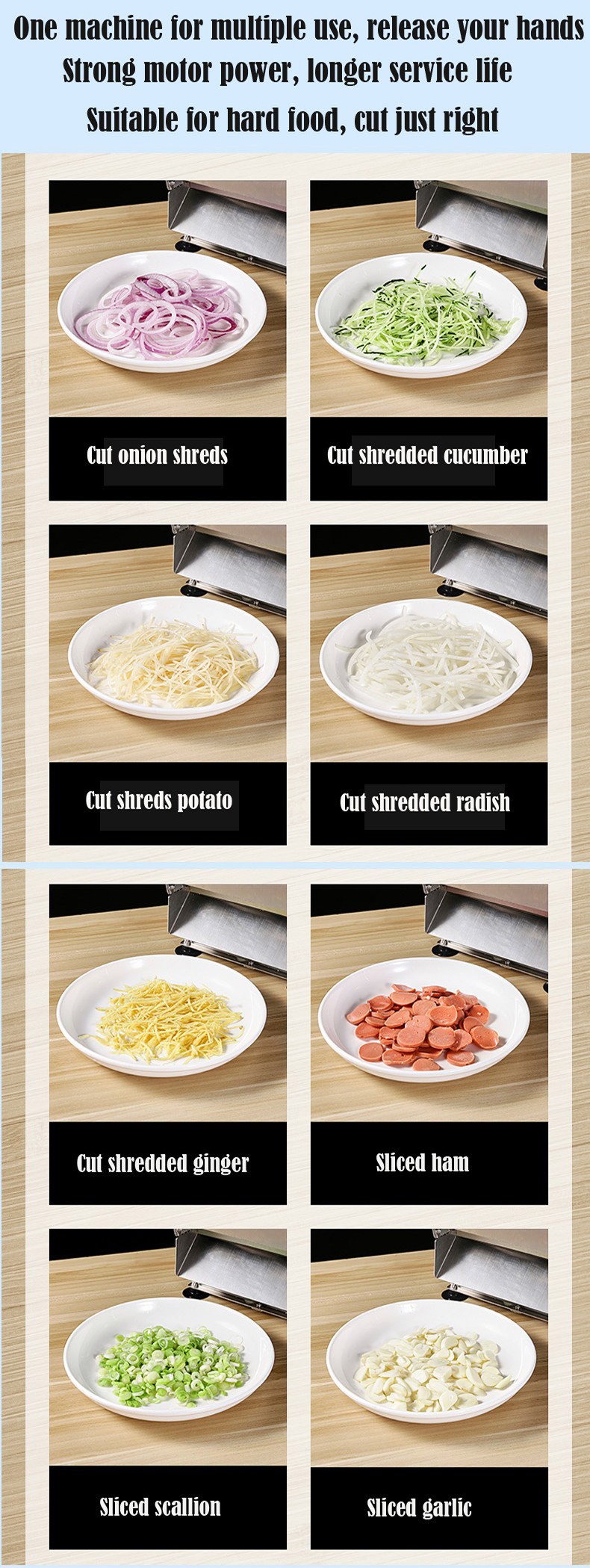 In addition, the high-power version can also be used to cut ham sausages, sausages, cooked beef, frozen meat, and so on.