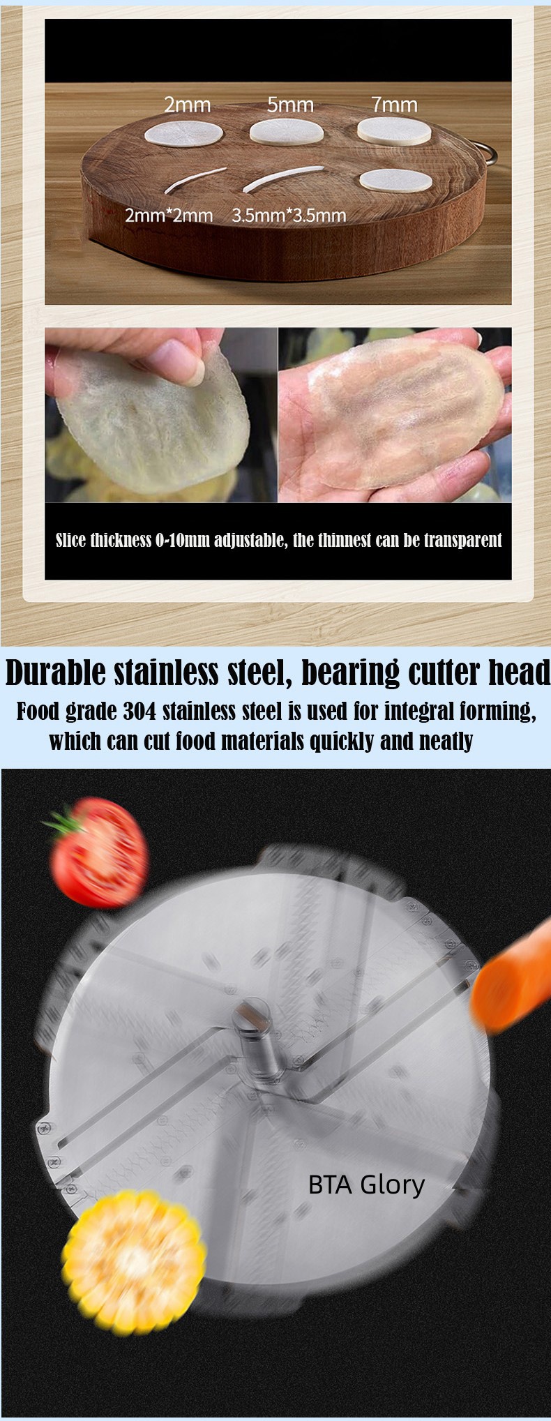 Suitable for various fresh and hard vegetables and fruits, sliced evenly and aesthetically pleasing.