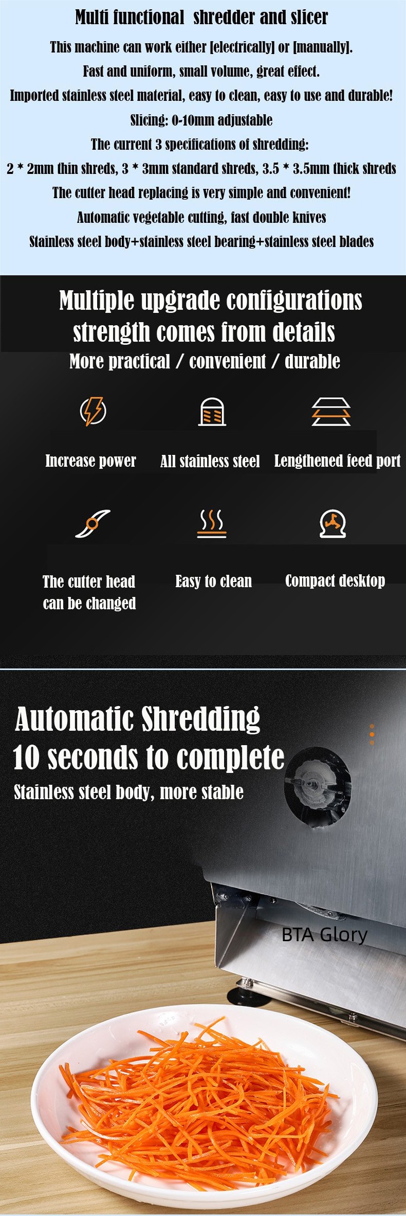 2. High configuration. Stainless steel body, stainless steel cutter head, stainless steel blades, and stainless steel bearings. It is wear-resistant, corrosion-resistant, and durable.