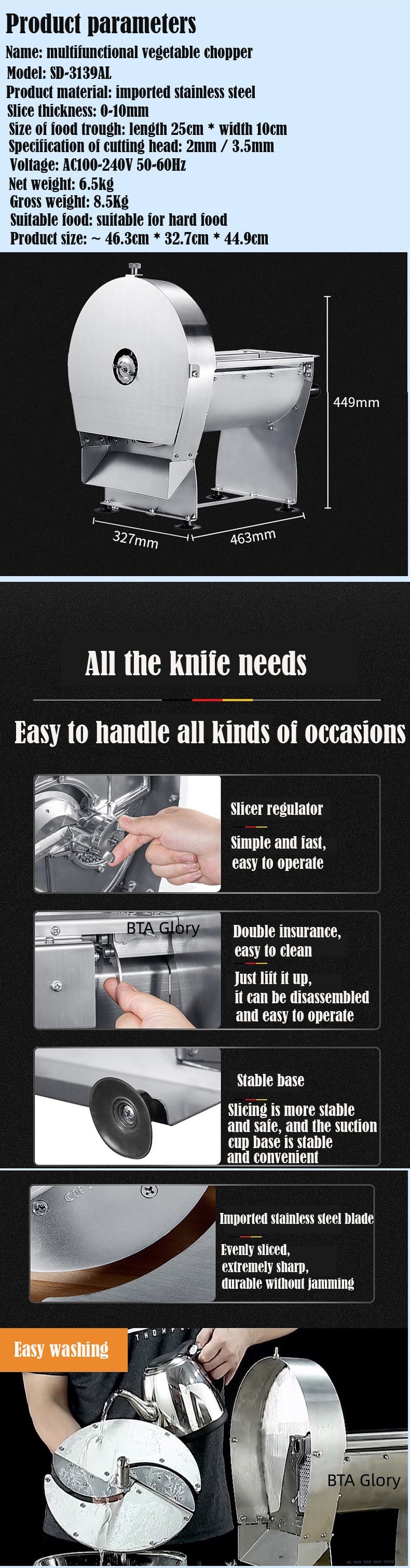 Slicing is fast and uniform, time-saving and labor-saving, easy to operate, and safe to use.